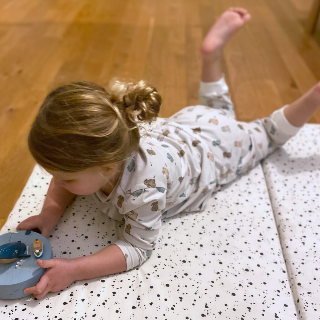 Je me rends compte que je n’ai jamais pris le temps d’écrire un article sur les pyjamas alors que ça fait quasiment deux ans que je couds tous les pyjamas de Lise. Super rapide à assembler à la surjeteuse et porté jusqu’à l’usure, c’est le genre de projet ultra-rentabilisé que j’adore coudre pour les enfants. J’en profite toujours pour me faire plaisir sur de jolis jerseys à motifs et j’aime voir Lise porter ses petits pyjamas maison, été comme hiver.